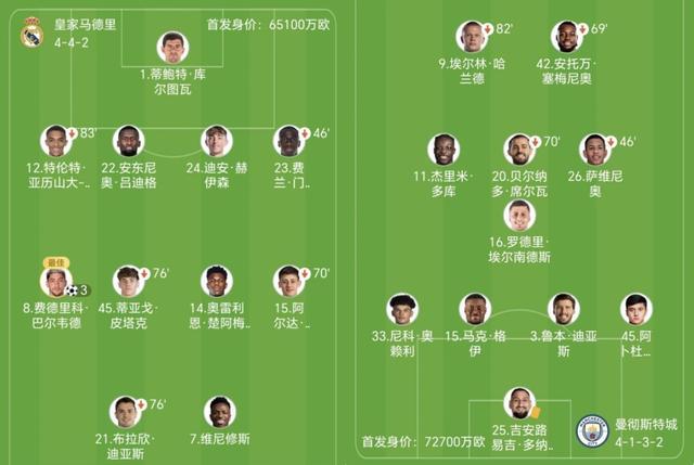 全场结束,皇马主场3-0大胜曼城,顺利取得首回合胜利。面对在联赛阶段曾击败自己的对手,以残阵出战的白衣军团却成为了表现更好的一方。